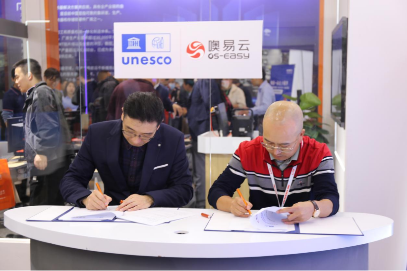 On April 8, 2023, representatives of UNESCO-ICHEI went to Chongqing to participate in the 58·59th Higher Education Expo China, and signed a strategic cooperation framework agreement and smart classroom cooperation agreement with OS-Group holding ltd. (hereinafter referred to as "OS-easy"). Mr. Xue Feng, the chief of IIOE Management Center of UNESCO-ICHEI, and Mr. Zhou Yi, the vice president of OS-easy, attended the signing ceremony. The two sides will cooperate in the field of smart classroom donation, cloud computing certification, course resource sharing, and international affairs expansion, and reach an agreement on smart classroom cooperation among the six Asian and African countries.