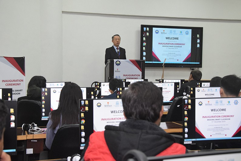 The induction refers to the training meeting that after the installation and several rounds of testing of SCR, UNESCO-ICHEI officially handed over the equipment to the technical staff of our partner universities for operation and management. At the induction, UNESCO-ICHEI introduced the methods, functions and uses, to fully mobilize their technology staff for management and their teachers for maximizing the use. It's of great help for teachers to maximize the effectiveness of SCR in the future. That time was the early stage of the building of SCR. Teachers of ABU knew little about this classroom, therefore, could not make the most use of it yet.