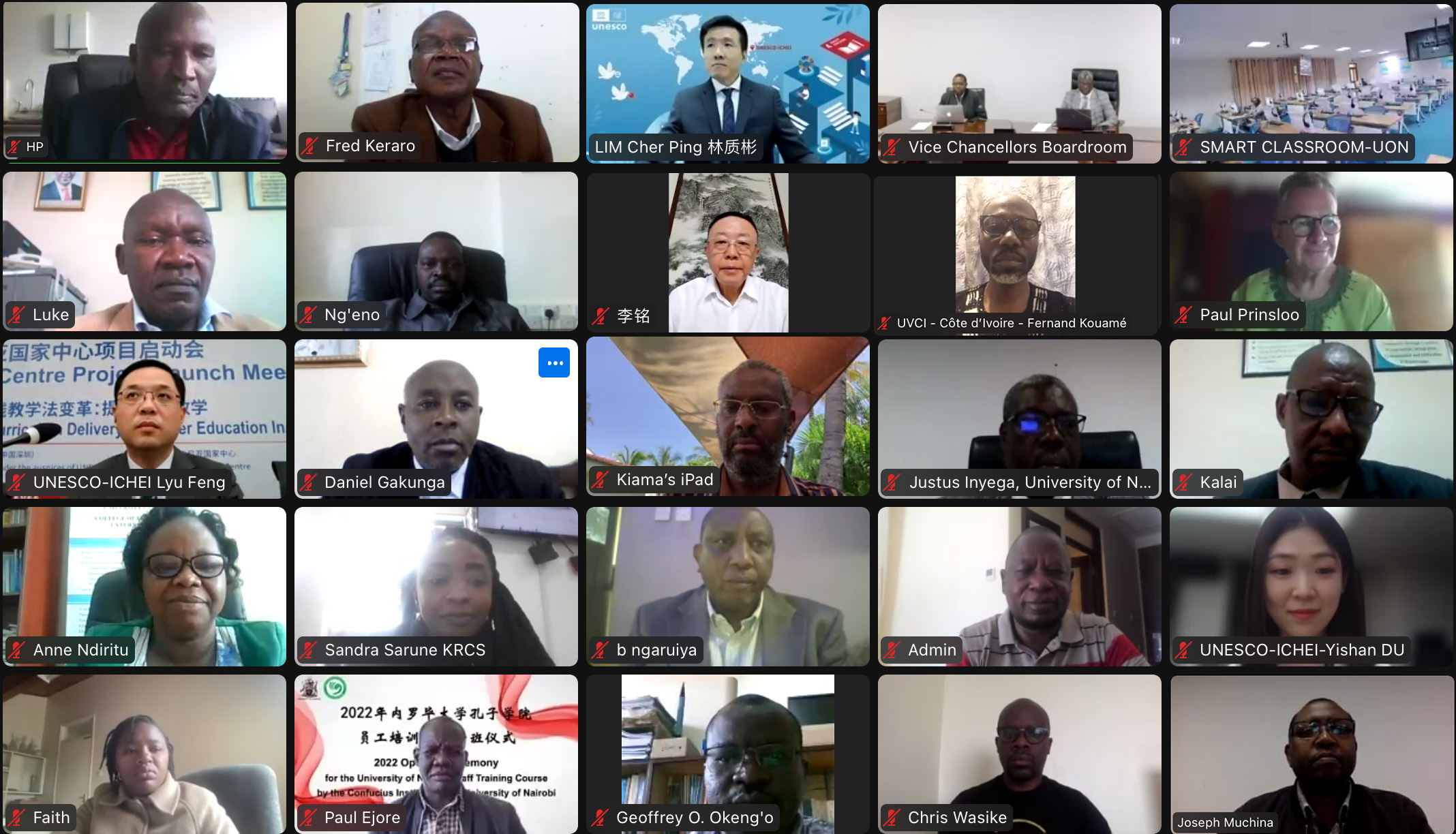 On September 30, 2022, the International Centre for Higher Education Innovation under the auspices of UNESCO (UNESCO-ICHEI) and University of Nairobi (Kenya) officially launched the IIOE Kenya National Centre Pilot Project on Transforming Online Pedagogy for Effective Curriculum Delivery in Higher Education Institutions in Kenya. The launch was witnessed by representatives from UNESCO-ICHEI,University of Nairobi, members higher education institutions (HEIs) of IIOE Kenya National Centre and UNESCO-ICHEI's global partner HEIs.