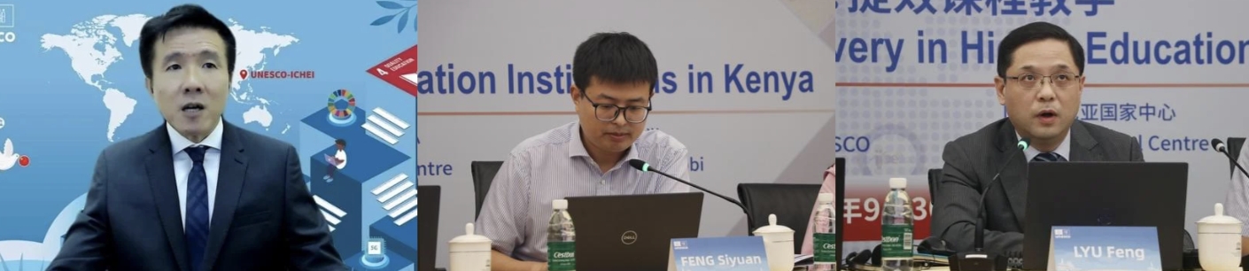 Under the chairmanship of Prof. LIM Cher Ping, Chief Expert of IIOE, UNESCO-ICHEI Associate Dean, Faculty of Education and Human Development, Education University of Hong Kong, China, Dr. FENG Siyuan, Chief of Knowledge Production and Communications Centre, UNESCO-ICHEI, and Mr. LYU Feng, Assistant Director Chief of IIOE Management Centre, UNESCO-ICHEI, presented the rationale and framework of the IIOE Pilot Project respectively. Prof. LIM Cher Ping highlighted that the project is of great innovation and will be localized and implemented based on the specific need of Kenyan HEIs, thus ensuring the sustainability and scalability of the project. He also expected the pilot project to optimize the online and blended teaching practice in Kenyan universities and provide valuable experience and scalable practices for other African countries.