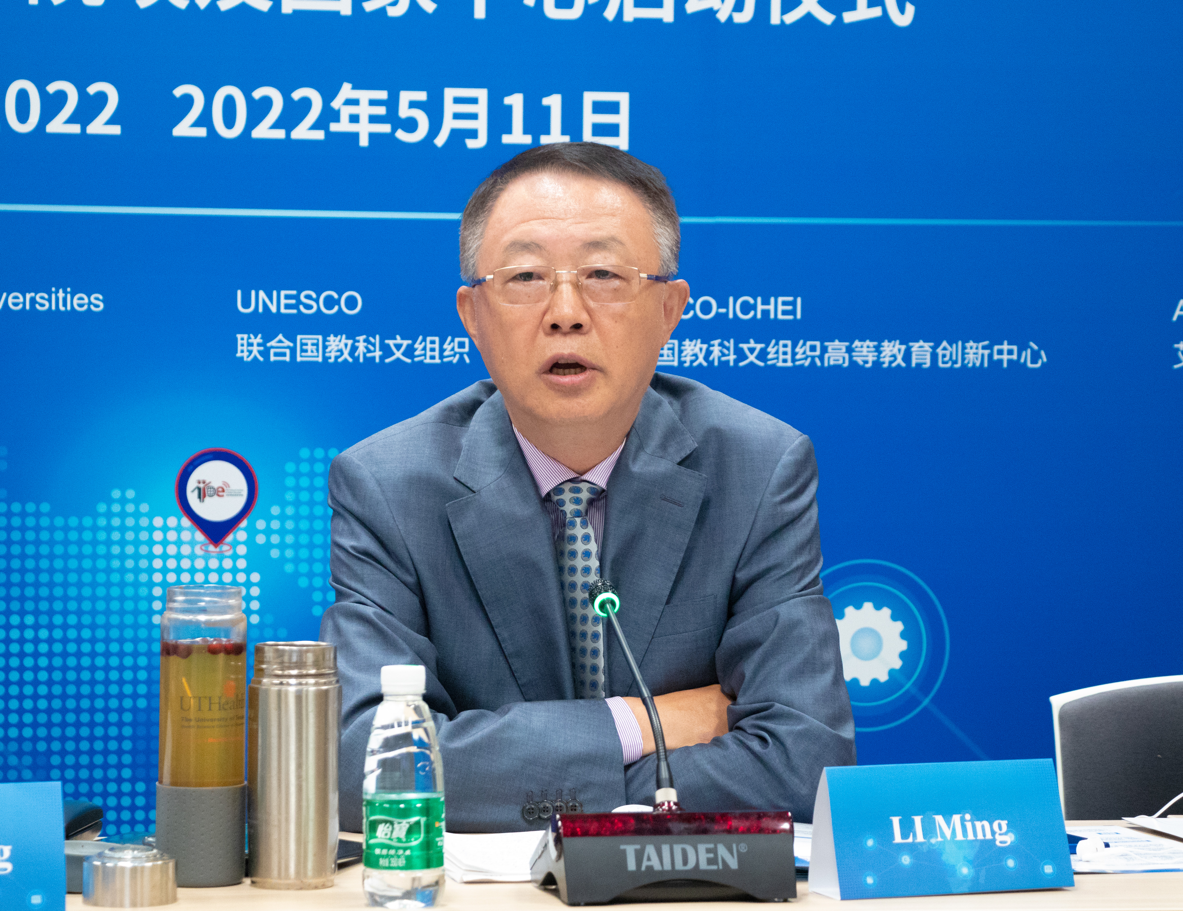 Prof. LI Ming, Director of UNESCO-ICHEI, highlighted the important role ASU played as the first IIOE Rotating Presidency Unit for 2020 and its outstanding contribution to IIOE's development throughout the years. The IIOE Egypt National Centre will support capacity building of online and blended teaching and learning at HEIs, not only in Egypt and but also across the region. In particular, he suggested that UNESCO-ICHEI would pilot the construction of a supportive ecosystem for digital transformation of higher education teaching and learning in Egypt, through the integrated application of research outcomes, educational resources and training programmes. He also hoped that the IIOE Egypt National Centre could contribute to developing local talent suited to development needs by customising IIOE's digital educational resources according to local contexts.
