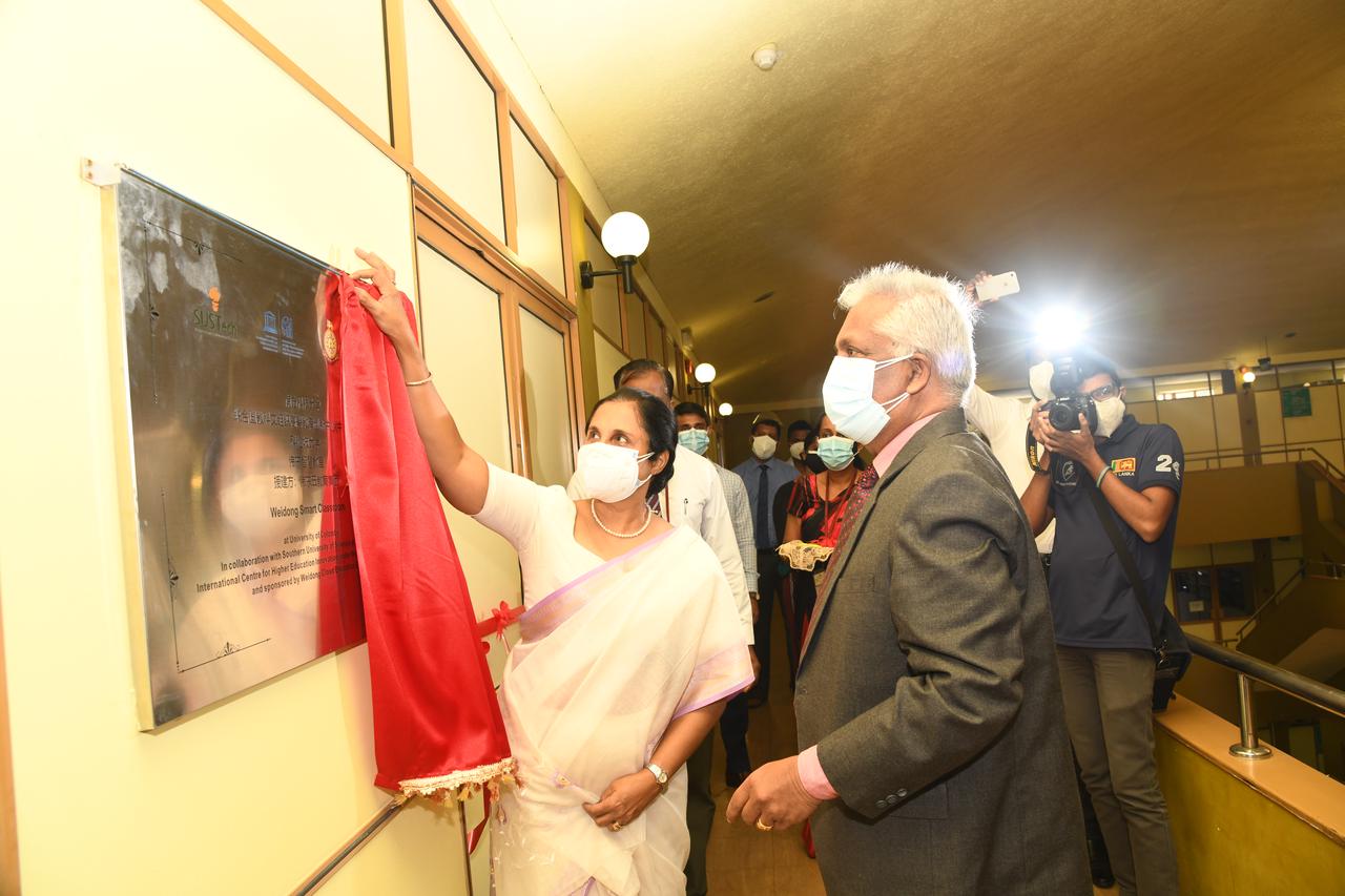 Towards the end of the ceremony, Senior Prof. Chandrika Wijeyratne and Senior Prof. Lakshman Dissanayake led the team to conduct plaque unveiling and ribbon cutting ceremony to symbolize the full deployment of the Smart Classroom at University of Colombo.