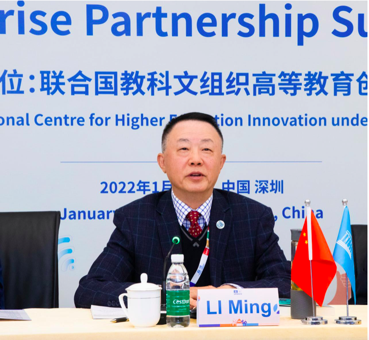 The First Enterprise Partnership Summit, organized by International Centre for Higher Education Innovation (Shenzhen, China) under the auspices of UNESCO (hereinafter referred to as "Innovation Center") and its International Institute of Online Education (IIOE), was successfully held on January 14, 2022, with the theme of "Connecting and Co-Building the Digital Future of Higher Education". Through the discussion on the trend and relevant practices of global higher education digital transformation, this summit provides a multilateral exchange platform for stakeholders in the field of global higher education, including international organizations, partner universities and enterprises, and helps build the global higher education digital transformation ecology. Business representatives from 56 countries in many regions of the world, representatives of UNESCO, representatives of global institutions of higher education and top scholars were invited to attend and present.