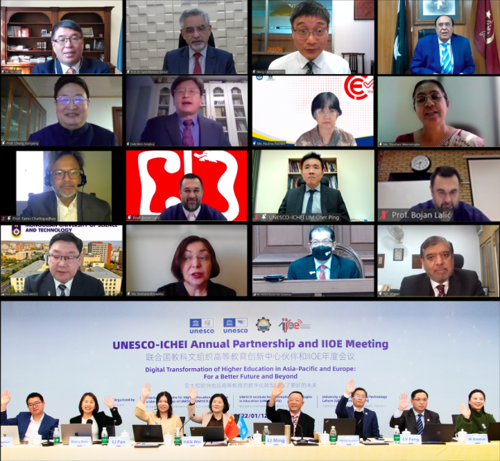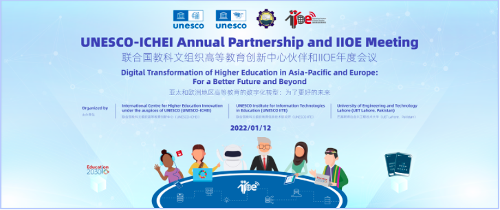 On 12 January 2022, experts and relevant stakeholders convened online and offline for UNESCO-ICHEI Annual Partnership and IIOE Meeting entitled "Digital Transformation of Higher Education in Asia-Pacific and Europe: For a Better Future and Beyond". This meeting was organized by International Centre for Higher Education Innovation under the auspices of UNESCO (UNESCO-ICHEI, Shenzhen, China) in collaboration with the UNESCO Institute for Information Technologies in Education (UNESCO IITE) and IIOE's 2021 Presidency Unit, University of Engineering and Technology at Lahore, Pakistan (UET Lahore). Over 80 policymakers, university leaders, teachers, experts, and researchers from partner higher education institutions (HEIs), organizations and other key stakeholders of Asia-Pacific, Europea and Latin America and the Caribbean participated.