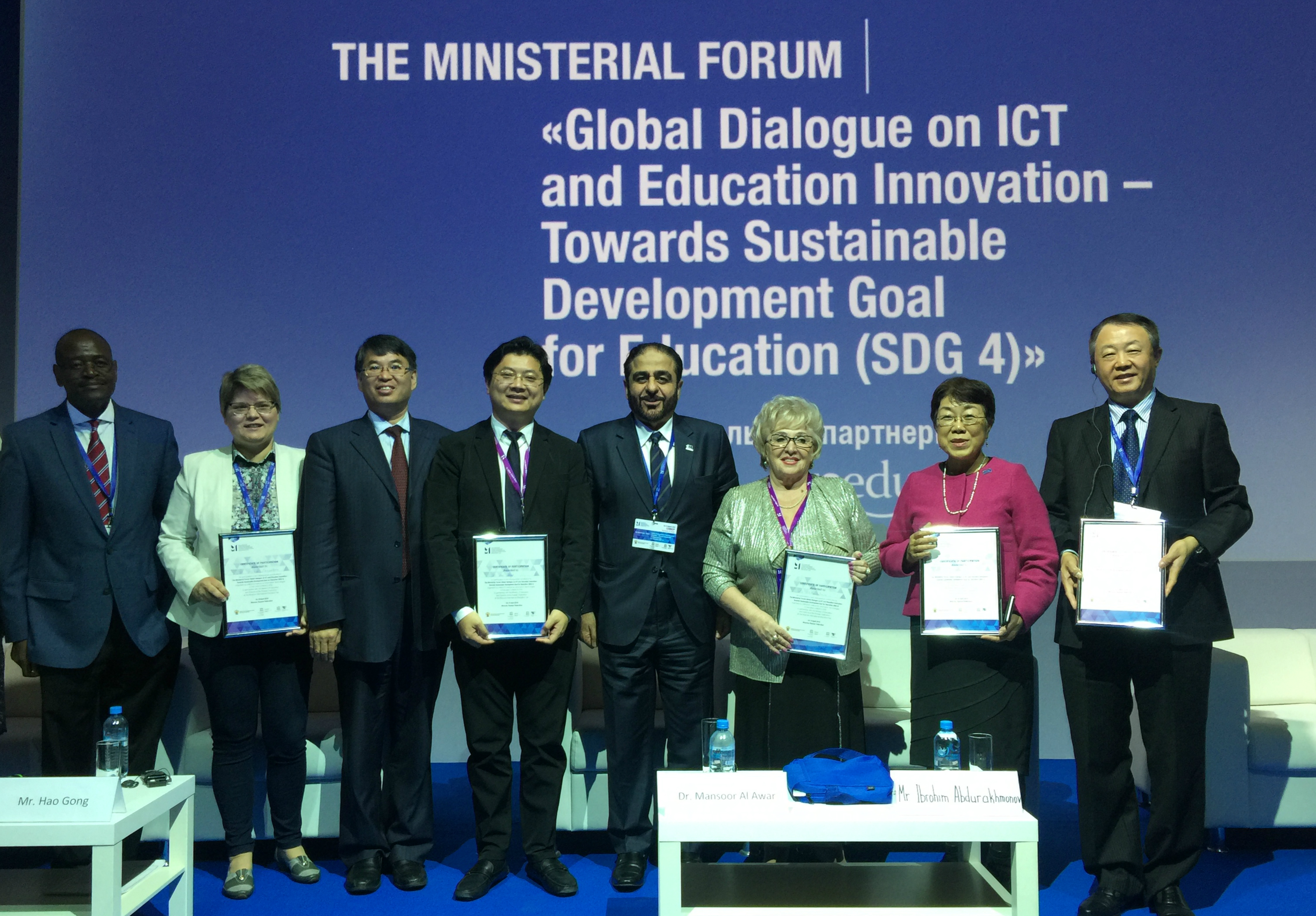 The Ministerial Forum "Global Dialogue on ICT and Education Innovation" was held by UNESCO Institute for Information Technologies in Education (IITE), which gathered ministers of the Ministry of Education from UNESCO member states, and representatives of the education sector, academia and business circles. Professor LI Ming, on behalf of ICHEI, delivered a speech titled ICT in Promoting the Improvement of Education Quality: Experiences and Practices. He used examples of the Smart Classroom Projects that ICHEI has been implementing in Asia and Africa to show the efforts made by ICHEI, which was highly thought of by participants in the Forum.