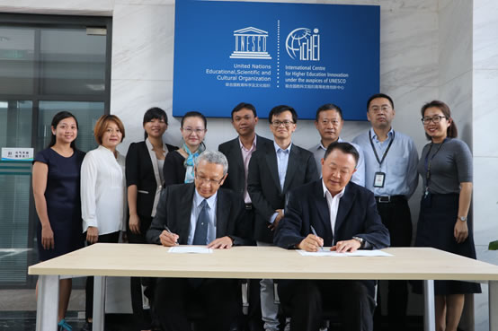 From March 19 to 23, 2017, the Delegation of Cambodia Development Resource Institute (CDRI) visited International Centre for Higher Education Innovation(ICHEI). Director of ICHEI, Prof. LI Ming, and Director of CDRI, Dr. Chhem Rethy, signed the Memorandum of Understanding on behalf of both parties.