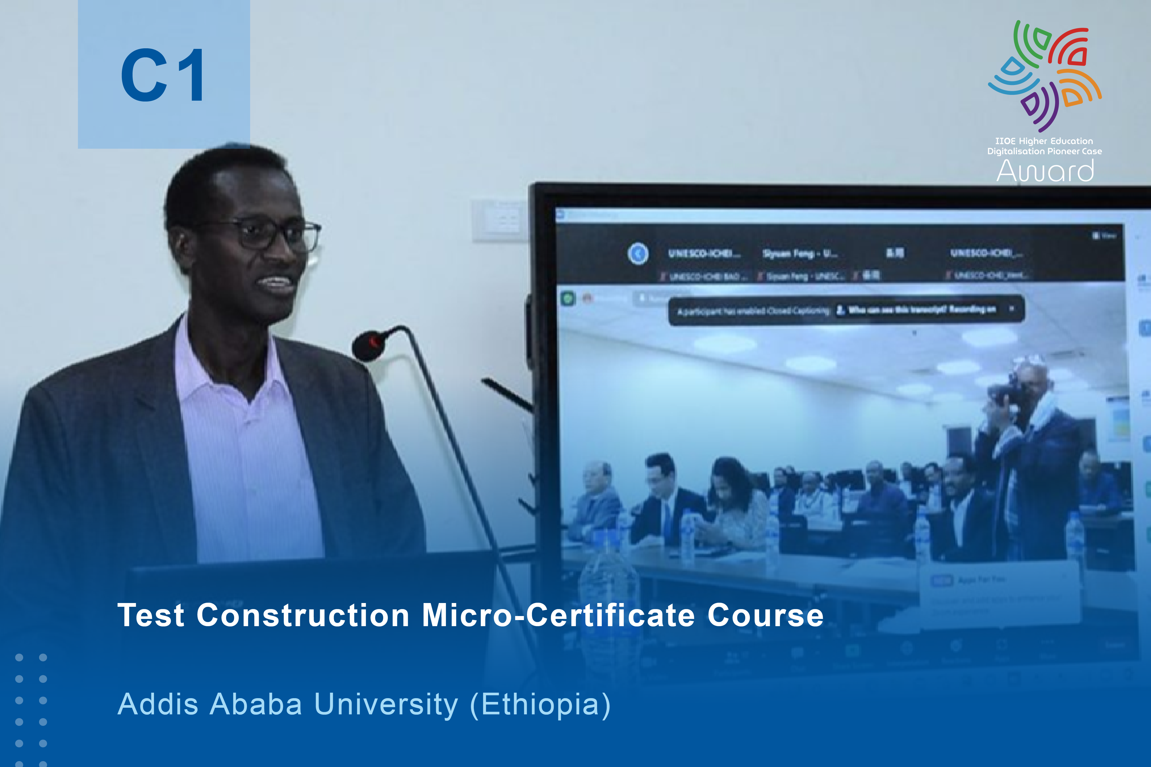 Jury's Comments: The project introduces micro-certification in test construction for the first time at Addis Ababa University, marking a novel initiative in Ethiopia's higher education landscape. It reflects a strong alignment with IIOE's goals—utilizing the IIOE platform, videoding digital competencies, and addressing an institutional skills gap.