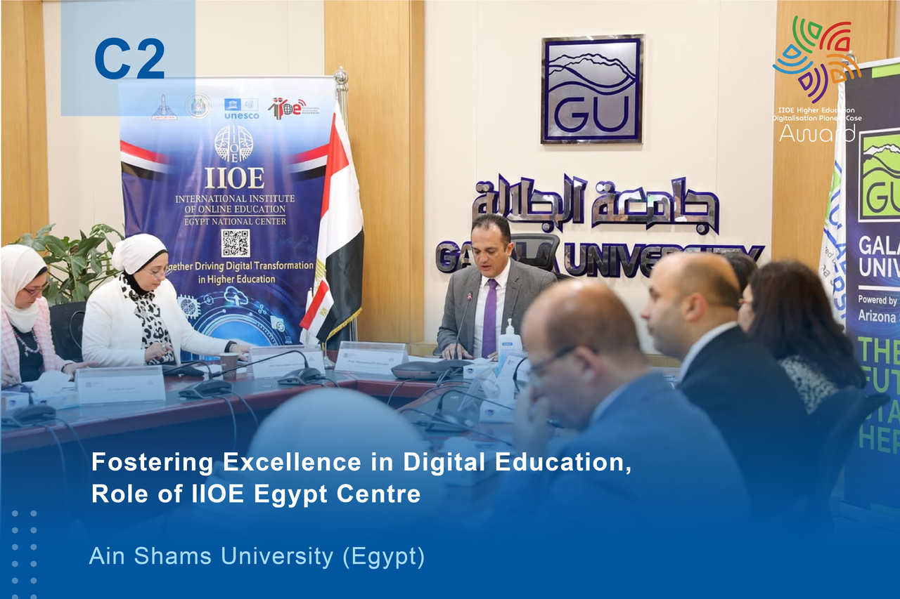 Since 2019, Ain Shams University (ASU) has collaborated with the UNESCO International Centre for Higher Education Innovation (UNESCO-ICHEI) to advance the digital transformation of higher education teaching. This effort has since expanded from ASU to encompass universities across Egypt. To realize this, ASU partnered with the International Institute of Online Education (IIOE) to establish the IIOE Egypt National Centre. The IIOE National Centre has implemented a series of initiatives, including launching and supporting micro-credential programs, organizing collaborative dialogues and meetings with partners, developing online courses, and conducting virtual mobility projects to enhance digital competencies for both faculty and students. These initiatives aim to build a nationwide network of HEIs, promote the implementation of online and blended learning across Egypt, establish a national dialogue platform to support professional development for university faculty and staff, collaboratively develop online courses aligned with Egypt’s national needs, advance research on higher education digital transformation, and foster local partnerships with the education industry.