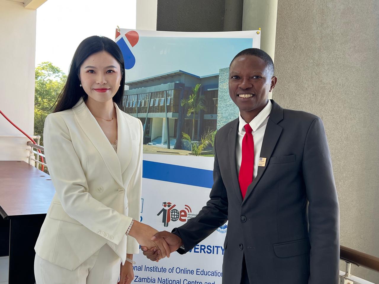 Ms. Shirley Kong, Overseas Marketing Director of GuangZhou Dazzleview Intelligent Technology Co., Ltd. and Dr. Brian Halubanza, Focal Point of IIOE Zambia National Centre; Dean, School of Engineering and Technology, Mulungushi University