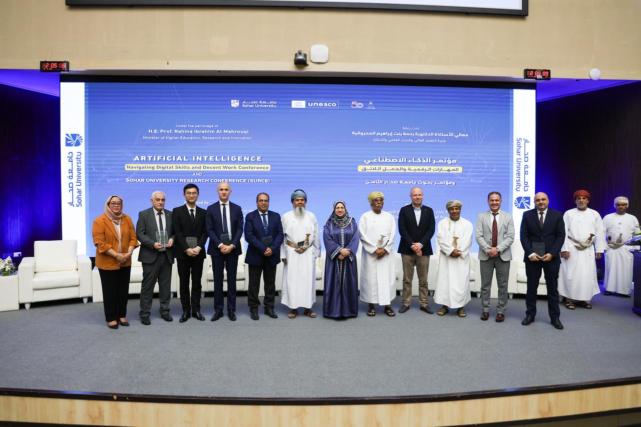 On 9-10 February 2025, Sohar University, in collaboration with the UNESCO Regional Office for the Gulf States and Yemen and the Oman National Commission for Education, Culture, and Science, organised the "Artificial Intelligence Conference: Navigating Digital Skills and Decent Work Conference" at its campus in Sohar, Oman. The eighth Sohar Univeristy Research Conference was also conducted as part of the event. The conference was held under the patronage of H.E. Professor Rahma bint Ibrahim Al Mahrouqi, Minister of Higher Education, Research, and Innovation.