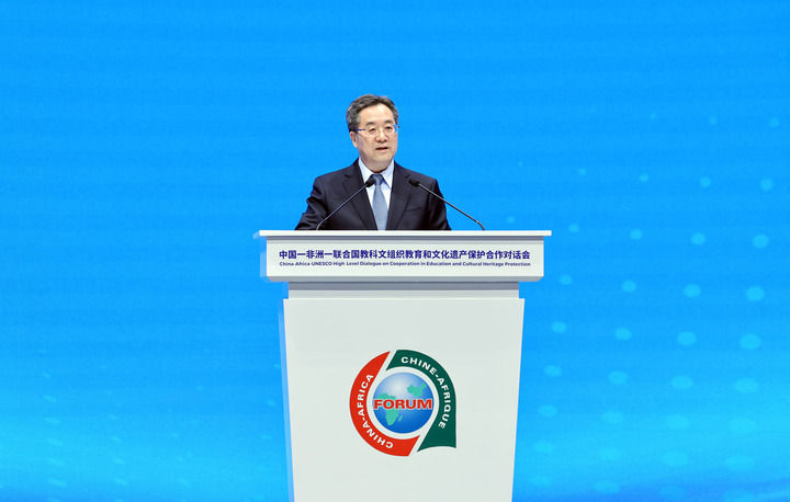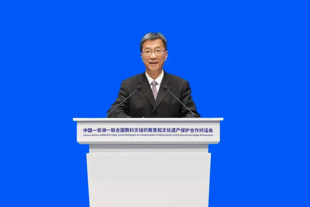 Mr. DING Xuexiang stated that education and cultural cooperation are important components of the China-Africa friendship and cooperation. In the new era, President XI Jinping has proposed major initiatives such as the China-Africa Cultural Cooperation Plan, Capacity Building Action, and Cultural Exchanges Projects, which have guided China-Africa education and cultural cooperation to achieve deeper and more practical progress, leading to a series of fruitful outcomes. The high-level dialogue featured two thematic events, focusing on "Dialogue on Education Cooperation" and "Dialogue on Cultural Heritage Protection Cooperation" respectively. The Welcome Remarks was moderated by Mr. CHEN Jie, Vice Minister of Education of the People's Republic of China and Director of the Chinese National Commission for UNESCO. Mr. HUAI Jinpeng, Minister of Education of the People's Republic of China, Ms. Stefania Giannini, Assistant Director-General for Education of UNESCO, and Dr. Monique Nsanzabaganwa, Deputy Chairman of the African Union Commission, attended the meeting and delivered remarks.