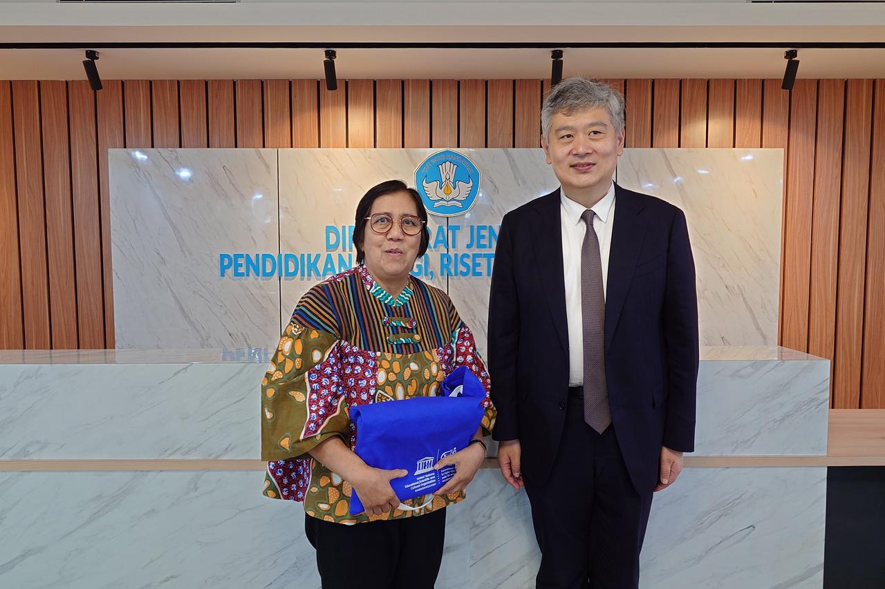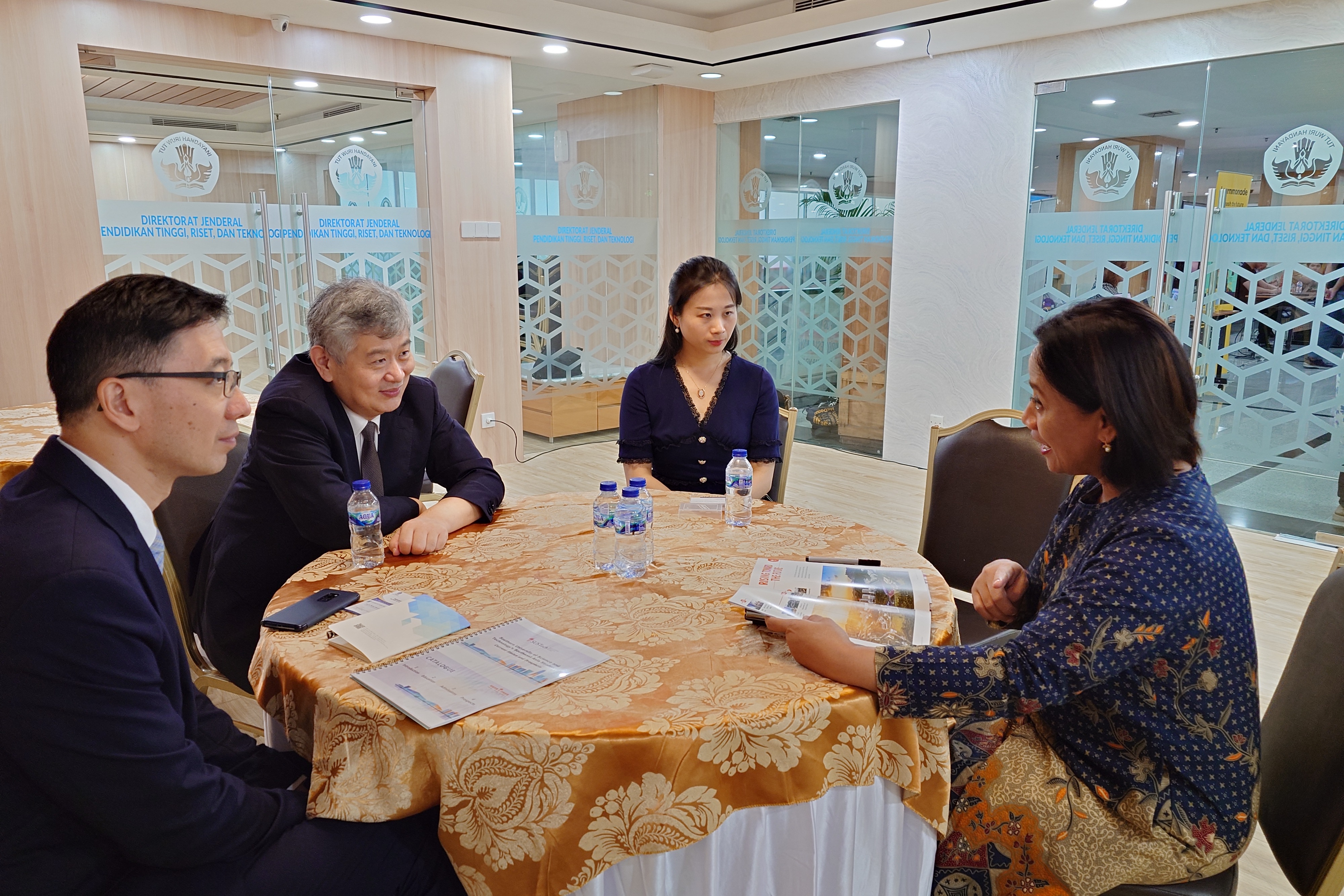 On April 25th, 2024, the International Centre for Higher Education Innovation under the auspices of UNESCO (UNESCO-ICHEI) co-organised 2024 Southeast Asia Regional High Level Policy Dialogue in Jakarta, Indonesia. From April 25th to 26th, a delegation of UNESCO-ICHEI, including Prof. Jin Li, Director of UNESCO-ICHEI and Vice President of Southern University of Science and Technology (SUSTech), Ms. Bi Xiaohan, Deputy Director of UNESCO-ICHEI, and the delegation held talks with Prof. Abdul Haris, Director General of Higher Education, Research, and Technology (DGHERT) of the Ministry of Education, Culture, Research, and Technology (MoECRT) of Indonesia, H.E. Dr. Som Ratana, Under Secretary of State of the Ministry of Education, Youth and Sports of Cambodia(MoEYS), and Mr. Mak Ngoy, Director General of Higher Education, MoEYS, and met with Indonesian university representatives, including Prof. Mohamod Yunus, Vice Rector for Academic Affairs, Universitas Terbuka (Indonesia Open University), Prof. Sri Hartati D. Reksodiputro, Chair, Academic Quality Assurance Office, Universitas Indonesia, and Prof. Wening Udasmoro, Vice Rector for Academic Affairs, Universitas Gadjah Mada. Besides, they visited the UNESCO Multisectionial Regional Office in Jakarta (UNESCO Jakarta) and Huawei Indonesia Subsidiary. Heads of relevant departments of SUSTech also participated in the talks.