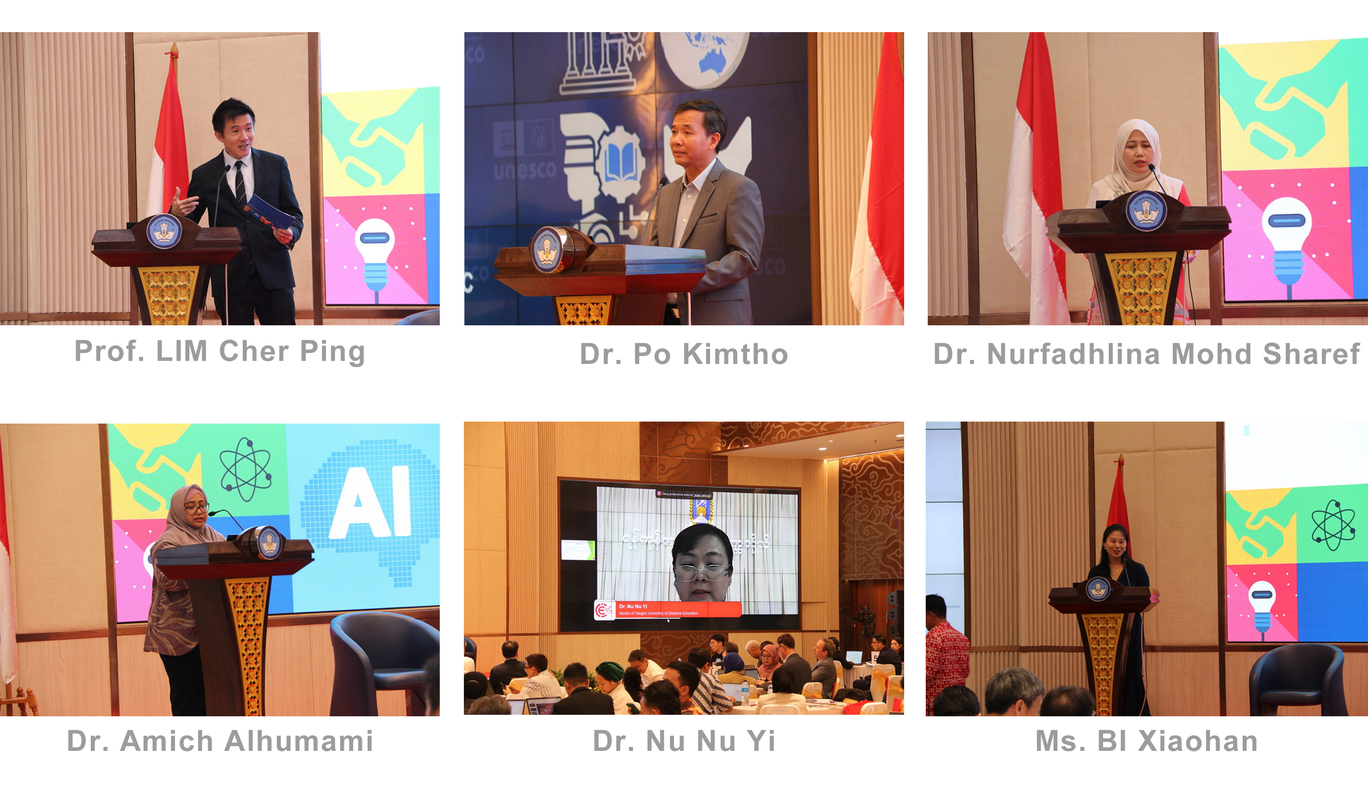 Session 1 was hosted by Prof. LIM Cher Ping, Chief Expert of the International Institute of Online Education (IIOE), UNESCO-ICHEI, Chair Professor of Learning Technologies and Innovation at the Education University of Hong Kong, China. Dr. Po Kimtho, Director General of the Institute of Technology of Cambodia (ITC) discussed challenges in universities' adoption of AI in Cambodia. Hence, the ITC strategy should encompass curriculum upgrades, enhanced institutional capacity, and infrastructure investments. Dr. Nurfadhlina Mohd Sharef, Associate Professor at Universiti Putra Malaysia, presented UPM's solutions for advancing AI integration in higher education, including the AI Change Management for UPM Framework aimed at enhancing teachers' AI literacy, as well as institutional governance through the establishment of policies, guidelines, and responsible AI implementation practices. Dr. Amich Alhumami, Director of Religion, Education and Culture, Ministry of National Development Planning, Indonesia, emphasised that strategies should focus on standards for ethics, AI talent development, and conducting research and innovation in the Al Industry. Dr. Nu Nu Yi, Pro-Rector of Yangon University of Distance Education, Myanmar, introduced the pivotal role of university leaders in shaping higher education during the AI era, emphasising the need for clear visions, strategic resource allocation, and collaborative partnerships within institutions. Ms. BI Xiaohan, Deputy Director, UNESCO-ICHEI, introduced the collaboration between UNESCO-ICHEI and Southeast Asian HEIs to launch and implement the "IIOE Micro-certification for Higher Education Teaching Personnel Project." This initiative aims to equip teachers, administrators, and leaders with digital competencies to effectively utilise GenAI for enhancing teaching, management, and leadership in higher education.