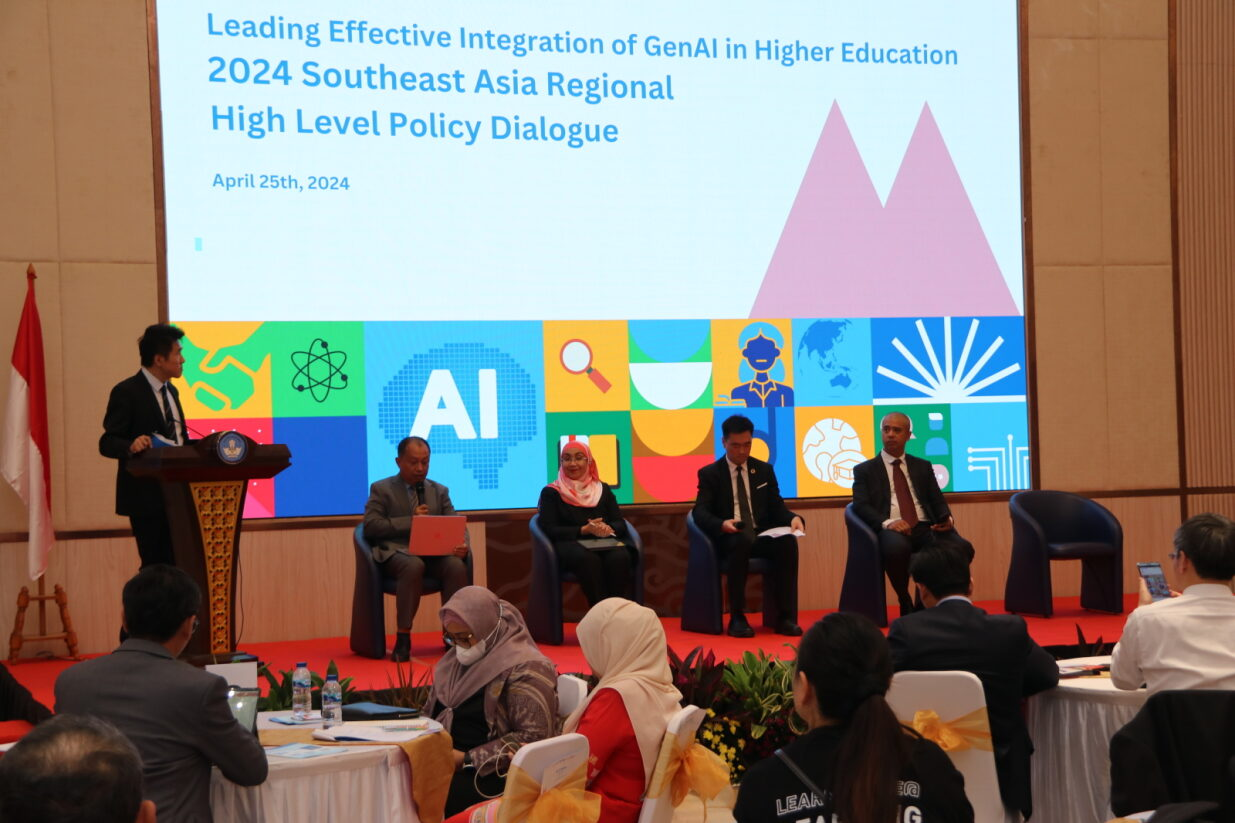 On the 25th of April, 2024, Jakarta, Indonesia, Southeast Asia Regional High-Level Policy Dialogue themed “Leading Effective Integration of GenAI in Higher Education” was co-organised by the Indonesia Cyber Education Institute (ICE-I, IIOE Indonesia National Centre), the International Centre for Higher Education Innovation under the auspices of UNESCO (UNESCO-ICHEI), UNESCO Regional Offices in Bangkok and Jakarta, with the support from Southeast Asian Ministers of Education Organisation (SEAMEO) Secretariat and Association of Southeast Asian Nations (ASEAN) Secretariat. This event was sponsored by the Asia Development Bank (ADB) and WPS Software PTE. LTD., showcasing a collaborative effort towards advancing GenAI integration into higher education across the region. Nearly 200 higher education leaders and stakeholders from China, Indonesia, Malaysia, Philippines, Thailand, Cambodia, Myanmar, and Viet Nam participated in the conference both online and offline.