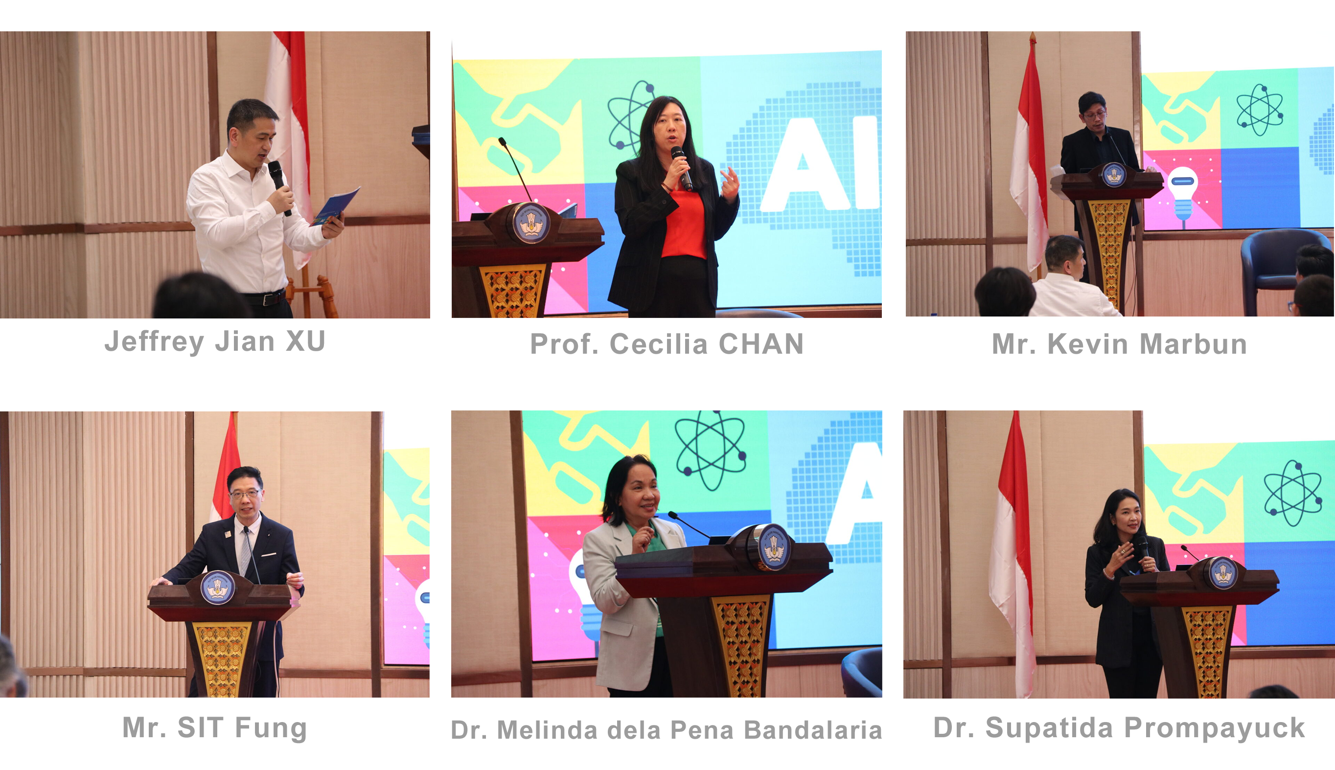 Session 2 was hosted by Mr. Jeffrey Jian XU, Education Practice, Human and Social Development Sector, ADB. Prof. Cecilia CHAN, Director of the Teaching and Learning Innovation Centre, Hong Kong University (HKU), China, showcased the practical efforts of HKU in providing a range of policies, guidelines and technical support to enhance AI literacy and professional development of teaching personnel in the AI era. Mr. Kevin Marbun, Head of Quality Assurance Team, Directorate of Learning and Student Affairs, Ministry of Education, Culture, Research, and Technology, Indonesia, introduced education policies in Indonesia and strategic priority projects in the national medium-term development plan for 2020-2024 (RPJMN). For Indonesian HEIs, the use of Al is important to facilitate the implementation of quality MOOCs. Mr. SIT Fung, Chief of IIOE, UNESCO-ICHEI, shared IIOE’s overall strategy and initiatives to accelerate integration between AI and education, including IIOE 1+X GenAI Literacy Programme, IIOE V3.0 – iTA, Smart Classroom Project, and IIOE AI Lab. Dr. Melinda dela Pena Bandalaria, Chancellor of the University of the Philippines Open University, Philippines, presented a proactive approach of the university to enhance teaching and learning outcomes, along with redesigning assessments to suit the utilisation of AI tools. Dr. Supatida Prompayuck, CEO of the S Curve Company; Expert Committee Member, Commission on Higher Education Standards, Ministry of Higher Education Science Research and Innovation, Thailand, highlighted the necessity for teaching personnel to upskill to harness AI's potential, putting pedagogy first, fostering collaboration, and addressing equity and accessibility.