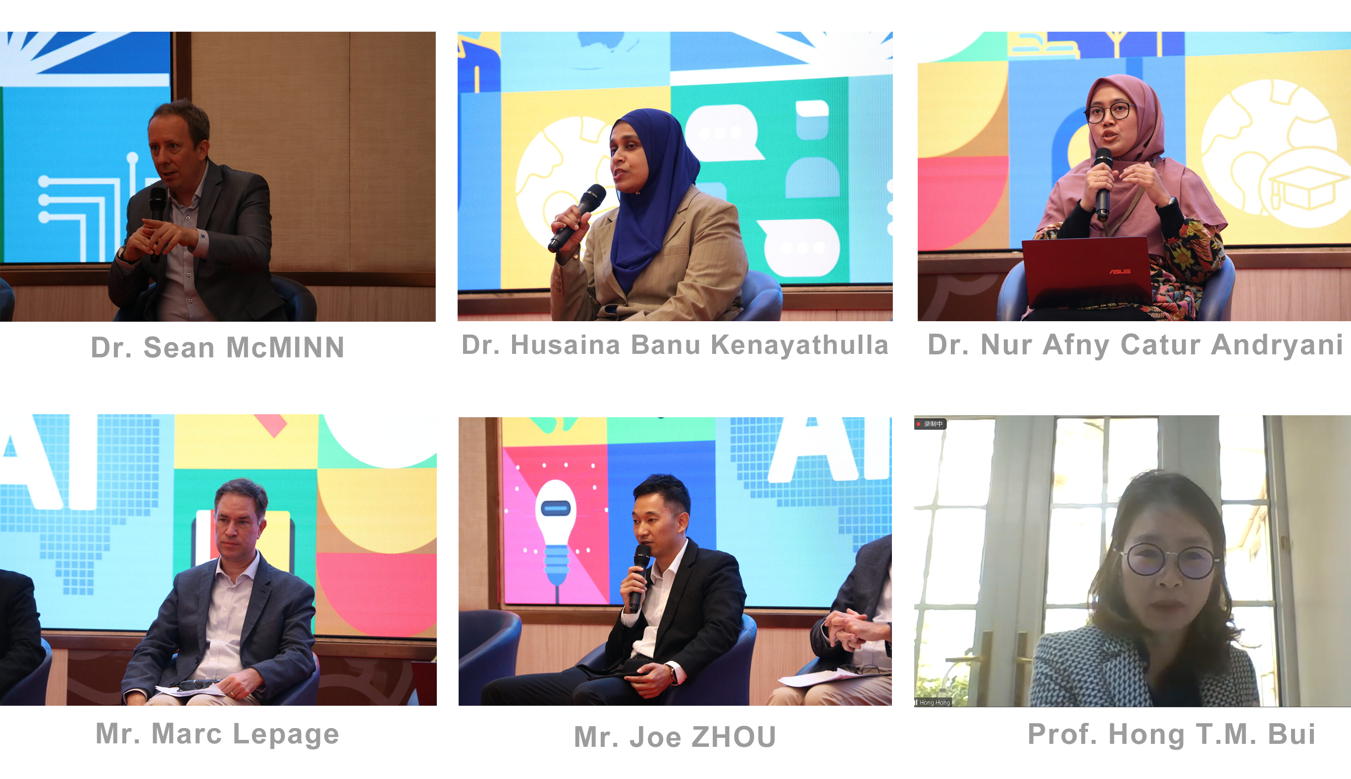 In the roundtable discussion session, six experts shared initiatives and projects at the national or institutional level to enhance teaching and learning. Dr. Sean McMINN, Director of the Center for Education Innovation, Hong Kong University of Science and Technology, China, highlighted AI literacy for students, faculty AI readiness, and improved regional collaboration through AI governance at the institution and government scenarios. Dr. Husaina Banu Kenayathulla, Associate Professor, Department of Educational Management, Planning and Policy, University of Malaya, Malaysia, shared the AI Literacy Programme for Everyone initiated by the Malaysian government and guidelines for students to use ChatGPT at the institutional level. Dr. Nur Afny Catur Andryani, Associate Professor, AI Data Science Enthusiasts Department, Bina Nusantara University, Indonesia, recognised the immense potential of AI and elaborated on her insights regarding the AI blueprint designed to facilitate AI integration in higher education. Mr. Marc Lepage, Principal IT Specialist (Technology Innovation), ADB, shared their initiatives under the umbrella term "digital leadership", linking climate change with innovative teaching at the university. Mr. Joe ZHOU, Southeast Asia Director of MAXHUB/Seewo, introduced Seewo's Industrial Solutions, concentrating on the development of digital terminals, primarily Interactive Blackboards, which aim at data collection, advancing GenAI, and enhancing public accessibility. Prof. Hong T.M. Bui, Director of Research, Innovation Enterprise and Professor of Business Education at Birmingham City Business School, emphasised the importance of not only advancing technology but also enhancing teaching personnel' AI competencies, exemplified by her recent project.