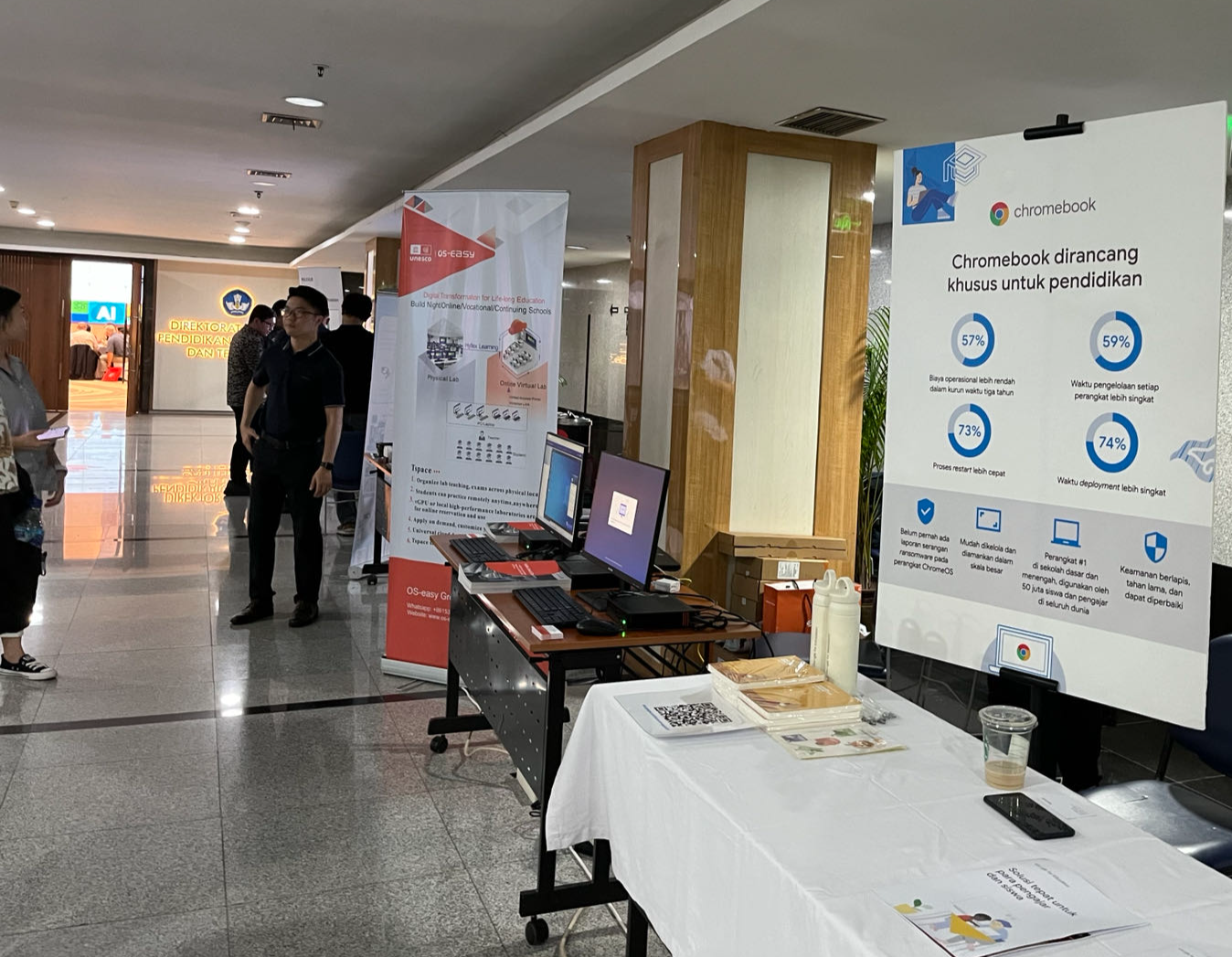 The Dialogue saw enthusiastic participation from over 10 high-tech enterprises involved with GenAI, including WPS Software PTE. LTD., Learnmonade, Seewo, OS-easy, JIQU, Microsoft, Amazon Web Services (AWS), and Google, which set up booths outside the event venue. They presented solutions and the application of GenAI in education. Exhibiting companies engaged in extensive interactions with attendees, presenting comprehensive GenAI+ education solutions.