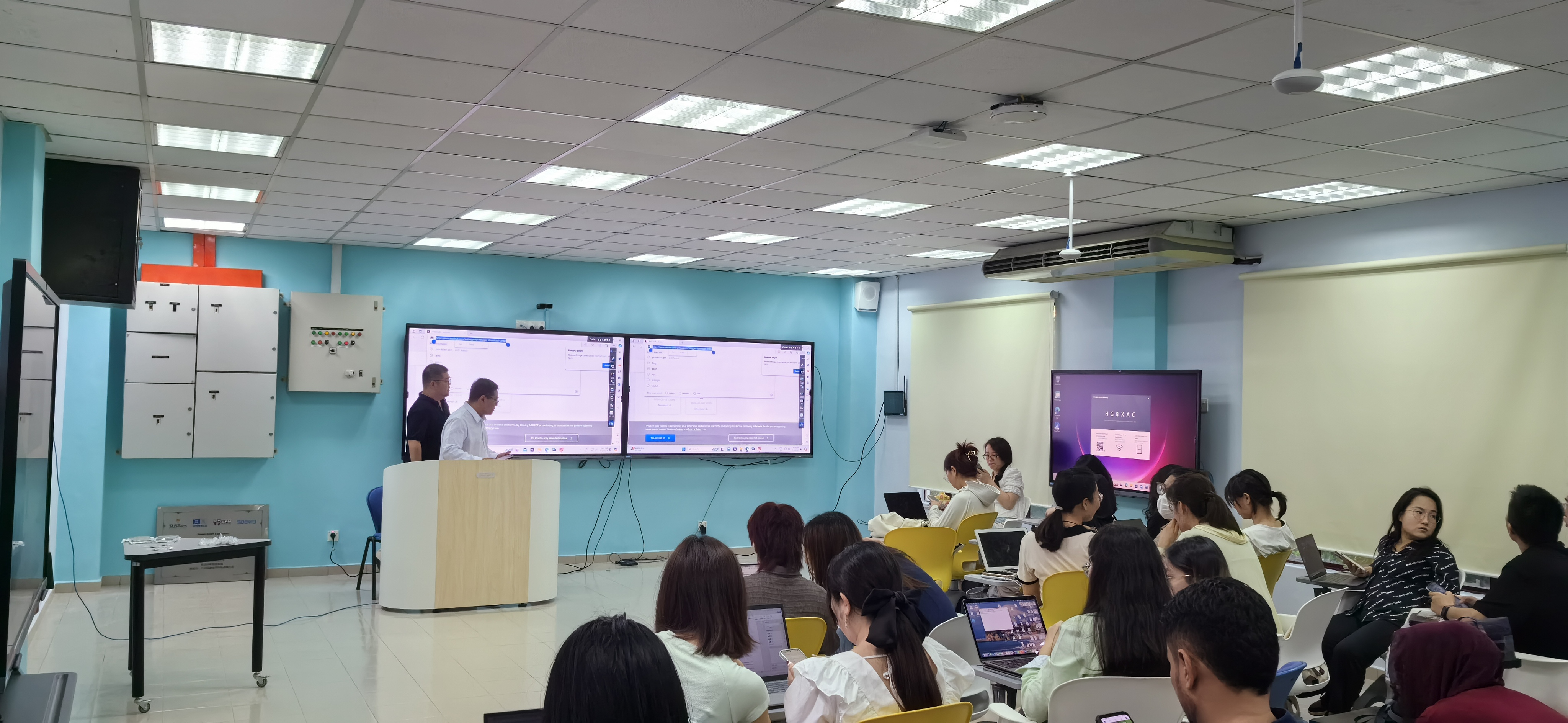 From March 25th to April 2nd, 2024, Mr. Tang Xiangzheng, CTO of the Smart Classroom Project, UNESCO-ICHEI and Yu Aobo, Project Manager, Seewo, visited the Universiti Putra Malaysia(UPM) to complete the installation and configuration of the smart classroom and conduct training on the use of the smart classroom to over 20 university personnel and 50 students. Prof. Dr. Ismi Arif Ismail, Deputy Vice-Chancellor of UPM, Assoc. Prof. Dr. Wan Marzuki Wan Jaafar, Dean of the Faculty of Educational Studies, and Assoc. Prof. Dr. Habibah Ab Jalil, Head of Innovative Learning Sciences Research Centre of Excellence, experienced Seewo Smart Classroom and said, “This is the best classroom we have now”.