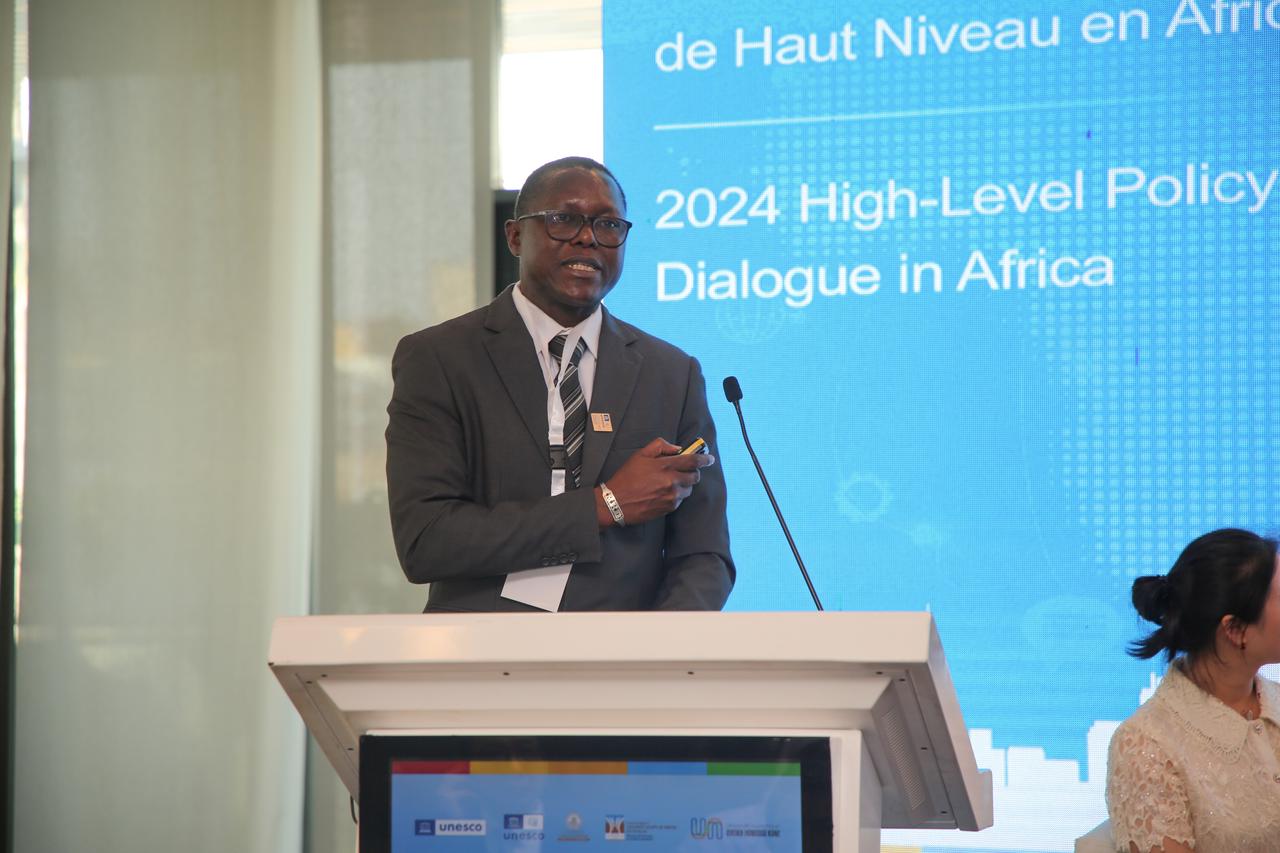 Mr. Guillaume Husson, Head of Education Sector, UNESCO Multisectoral Regional Office for West Africa, highlighted Africa's youthful population as a significant opportunity, yet pointed out the major challenges the continent faces in the AI era, particularly the constraints on research capabilities. Mr. Husson called for collective action to implement policies and strategies to transform African higher education and strengthen innovation and research through the Campus Africa programme. He expressed hope that the policy dialogue would lead to concrete solutions that leverage the power of AI to create a more inclusive, equitable, and sustainable future in Africa.