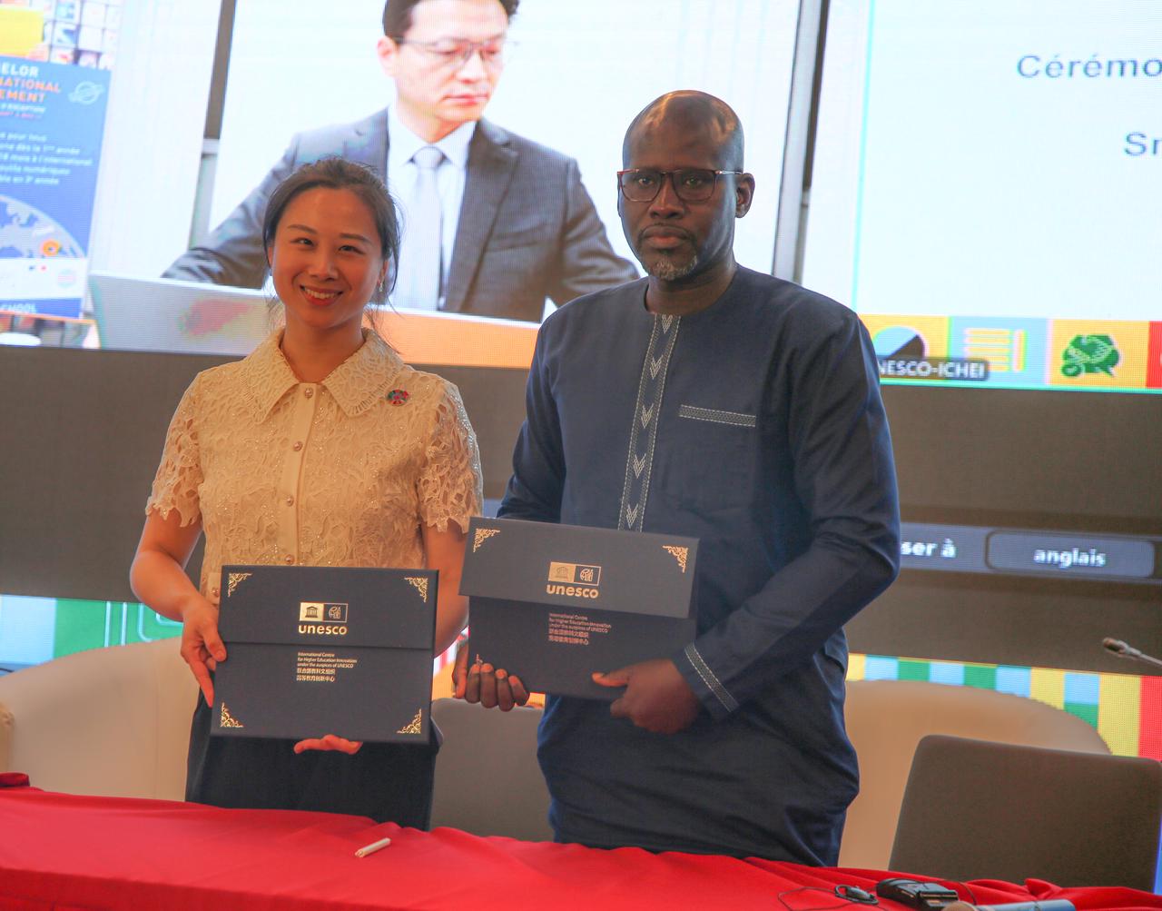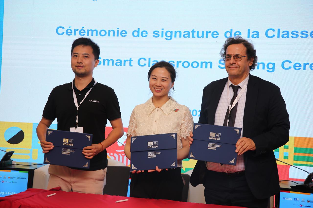 The Smart Classroom signing ceremony was held during the meeting. Led by UNESCO-ICHEI, with academic support from the Southern University of Science and Technology (SUSTech), the Weidong Cloud Education Group has signed cooperation agreements with Université Gaston Berger (Senegal), while MAXHUB has signed an agreement with the University of Science and Technology Houari Boumedienne (Algeria). The Smart Classroom is a flagship project of UNESO-ICHEI, which aims to enhance the infrastructure facilities of partner HEIs in African and Asian countries, strengthen their capacity for designing and implementing online and blended teaching and learning, and accelerate the digital transformation of their higher education systems. In Africa, smart classrooms have been implemented in 7 countries so far, including Egypt, Gambia, Djibouti, Nigeria, Uganda, Ethiopia, and Kenya, benefiting over 20,000 university teachers and students.
